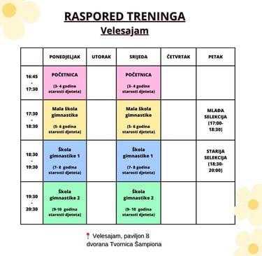 Naša dvorana na Velesajmu pruža idealan prostor za treninge gimnastike svih uzrasta.